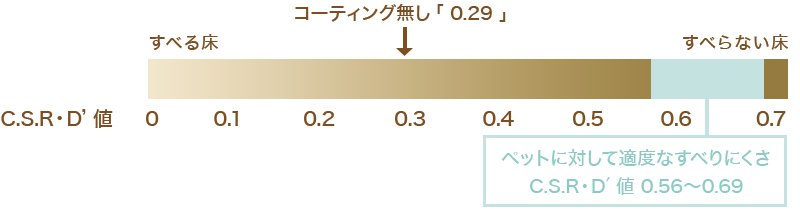 滑り抵抗性能3 | 滑り片(スリッパ)JIS A 1454:2016高分子系張り床材試験方法17 滑り性試験に準ずる | (乾燥状態)0.77 |