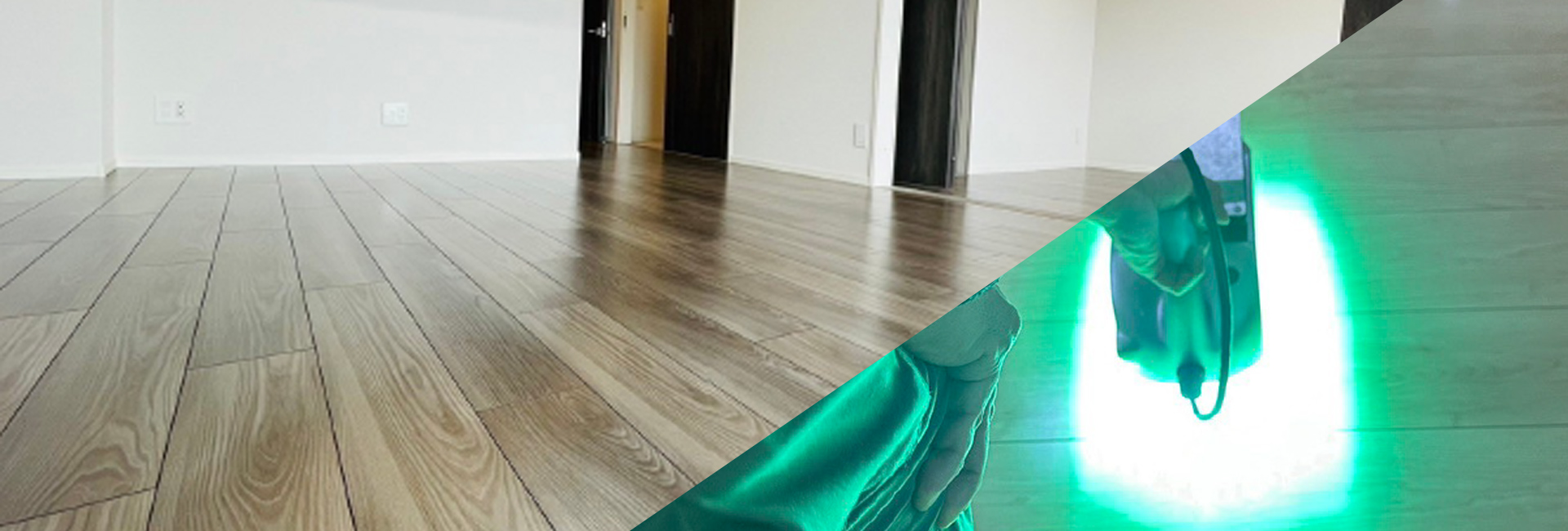 エスコートUVは紫外線硬化樹脂をフローリング表面に塗布し、紫外線照射機を使用することにより塗膜を瞬間硬化させるフロアコーティングです。
